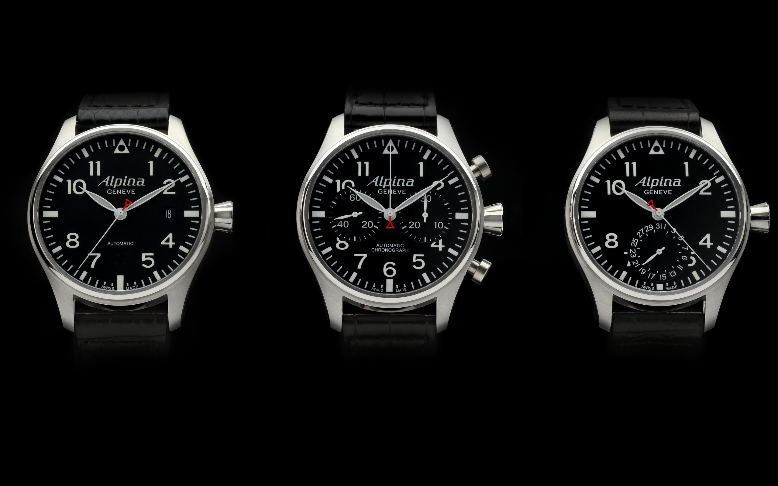 Description: Three watches are shown in three different positions on a black background.