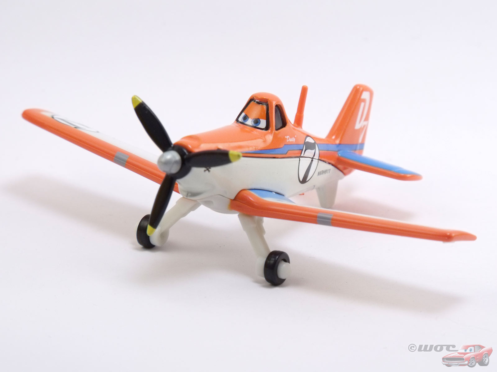 Description: A toy airplane with a propeller on a white background with a white background and a black and orange stripe.