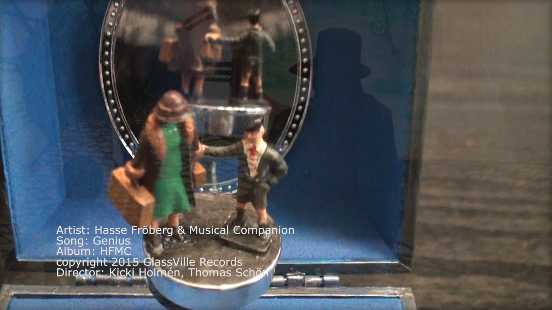 Description: A toy figurine of a man and woman in a mirror with a blue background and a text that reads artist has been.