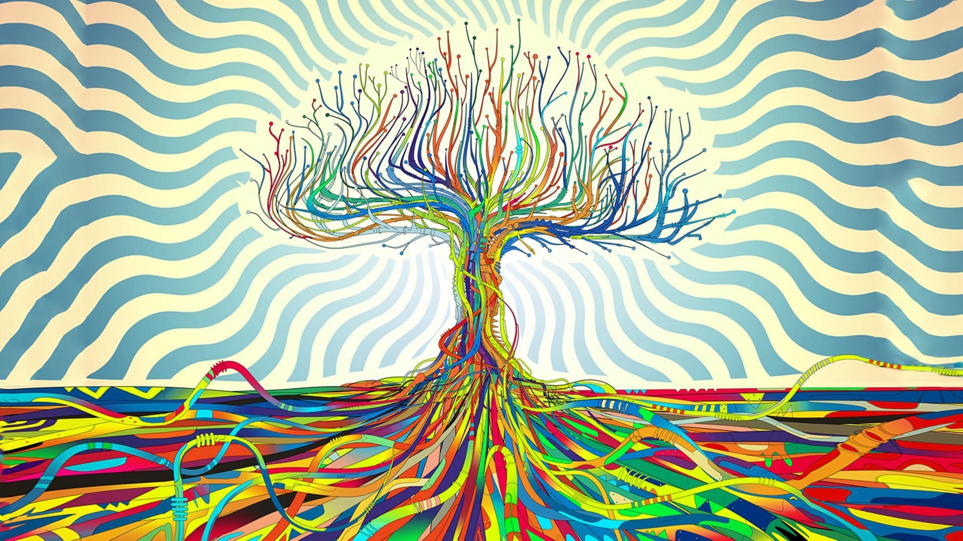 Tree colorful swirl pattern sky - free wallpaper for desktop | 5desktop.com