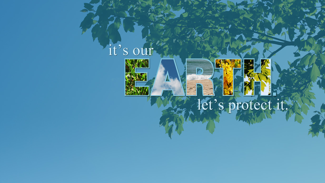 Description: A tree with the words earth in it's letters and a sky background with clouds in the background.