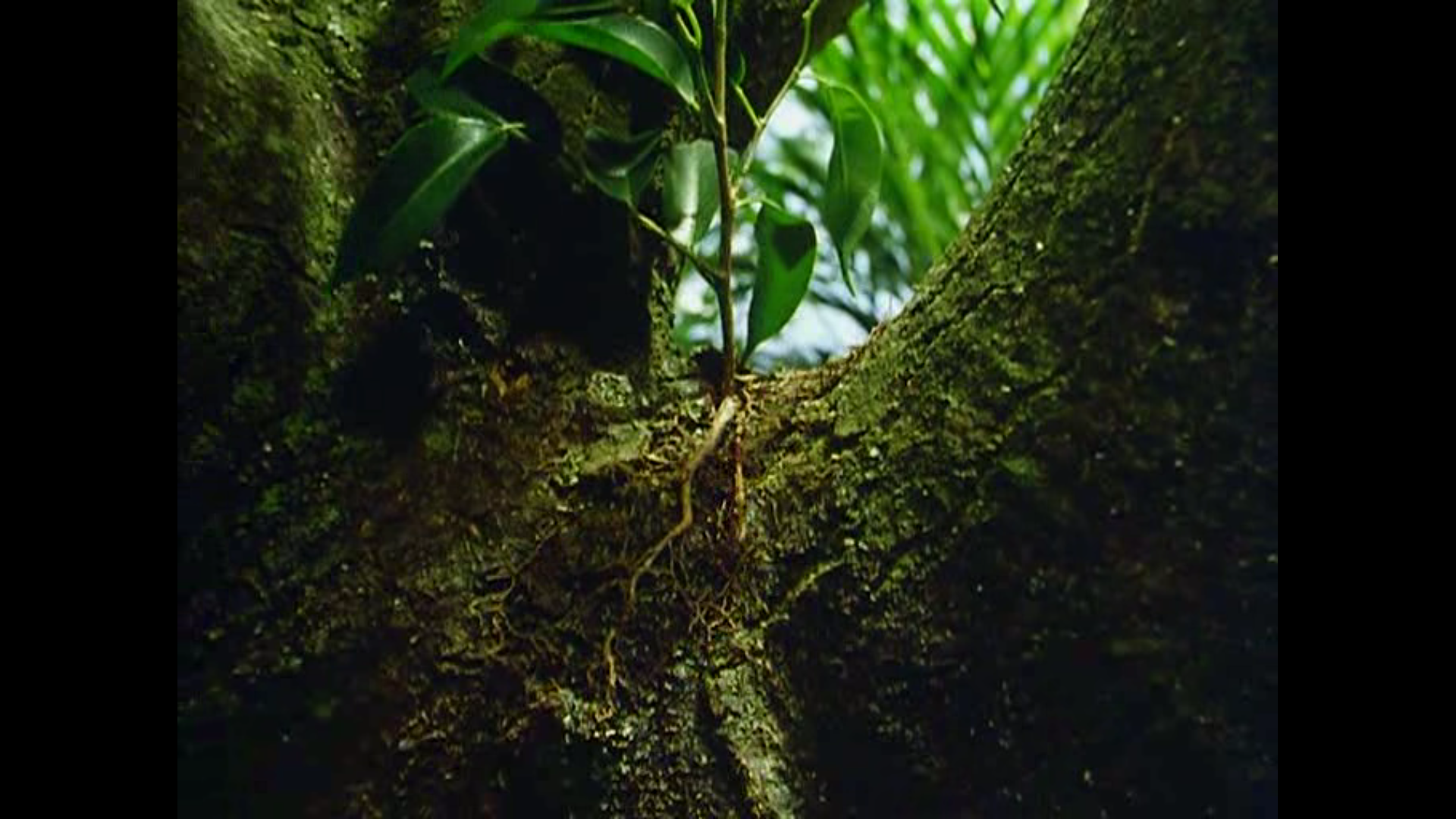 Description: A tree with a bunch of green leaves on it's branches and roots in the middle of the tree.