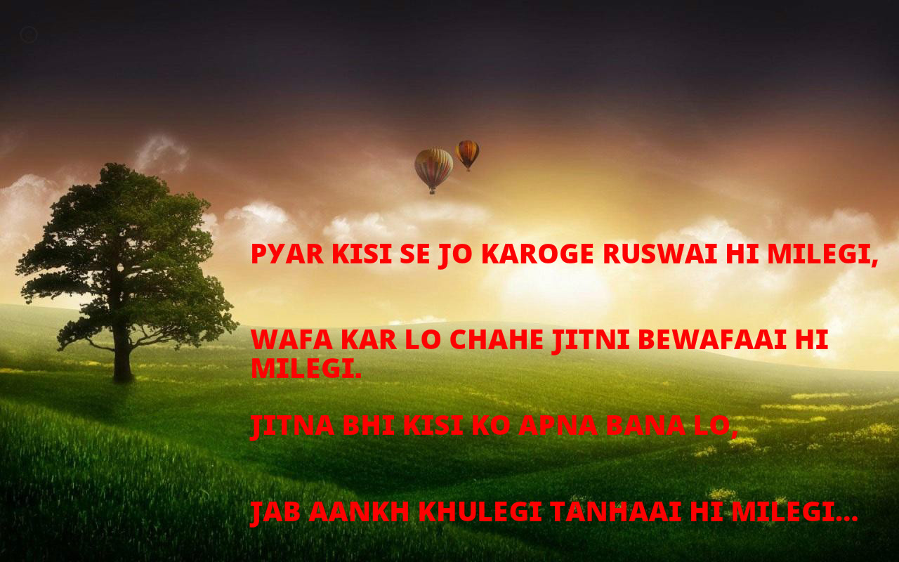 Description: A picture of a tree and a hot air balloon in the sky with a quote from a poem by a person.