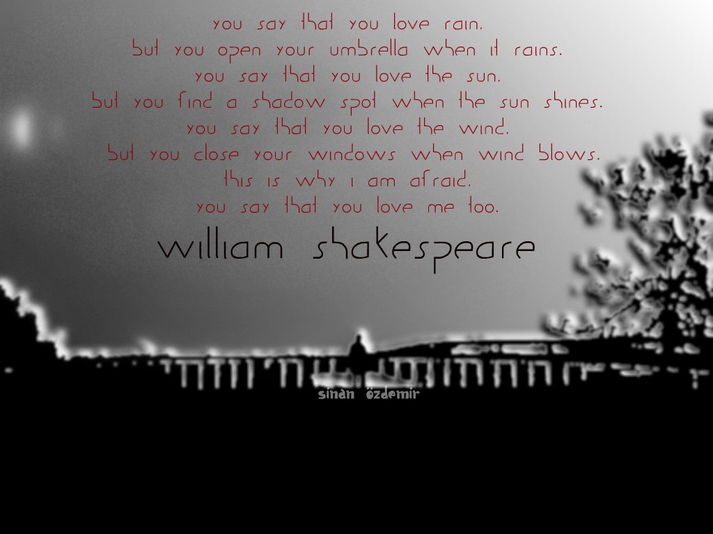 Description: A picture of a tree with a poem written in it that says william shakespeare you can't tell what you have.