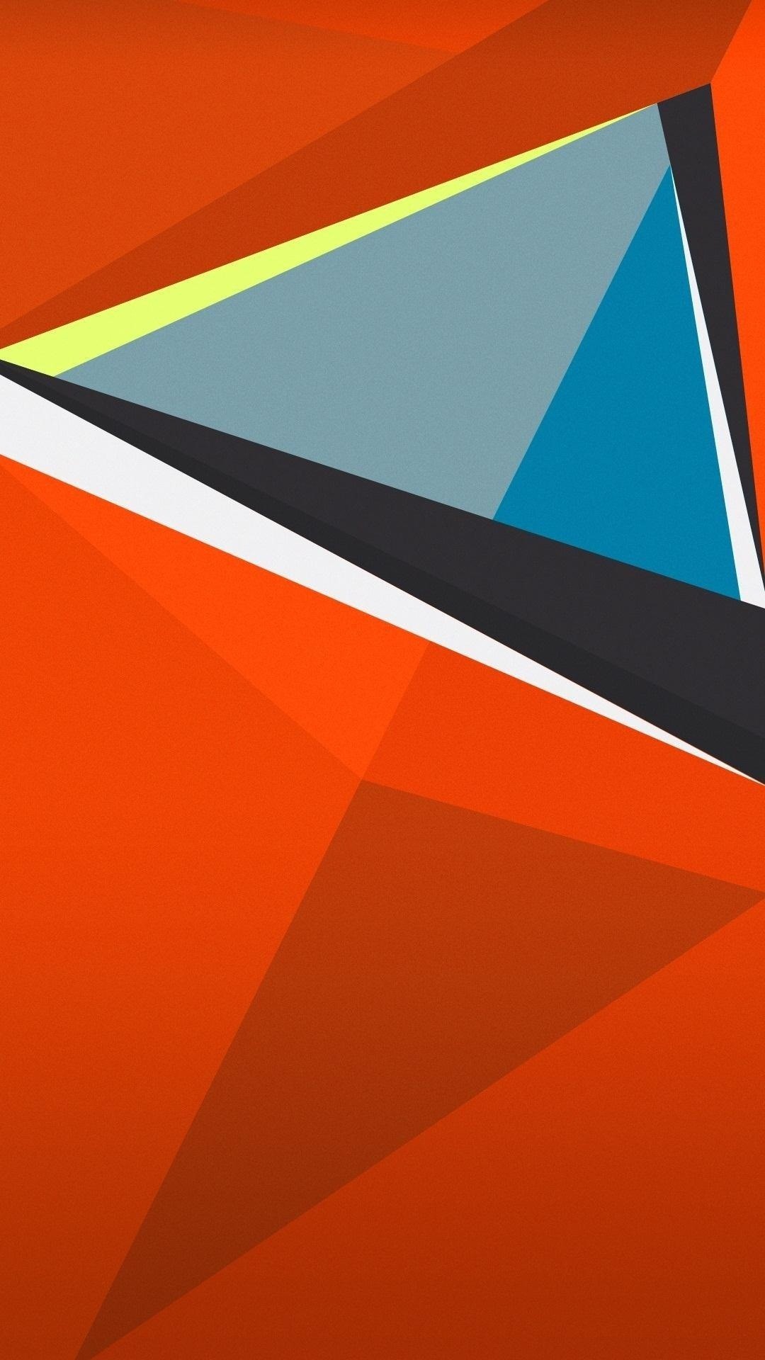 Description: A painting of a triangle on an orange background with a black border around it and a blue triangle on the bottom of the triangle.