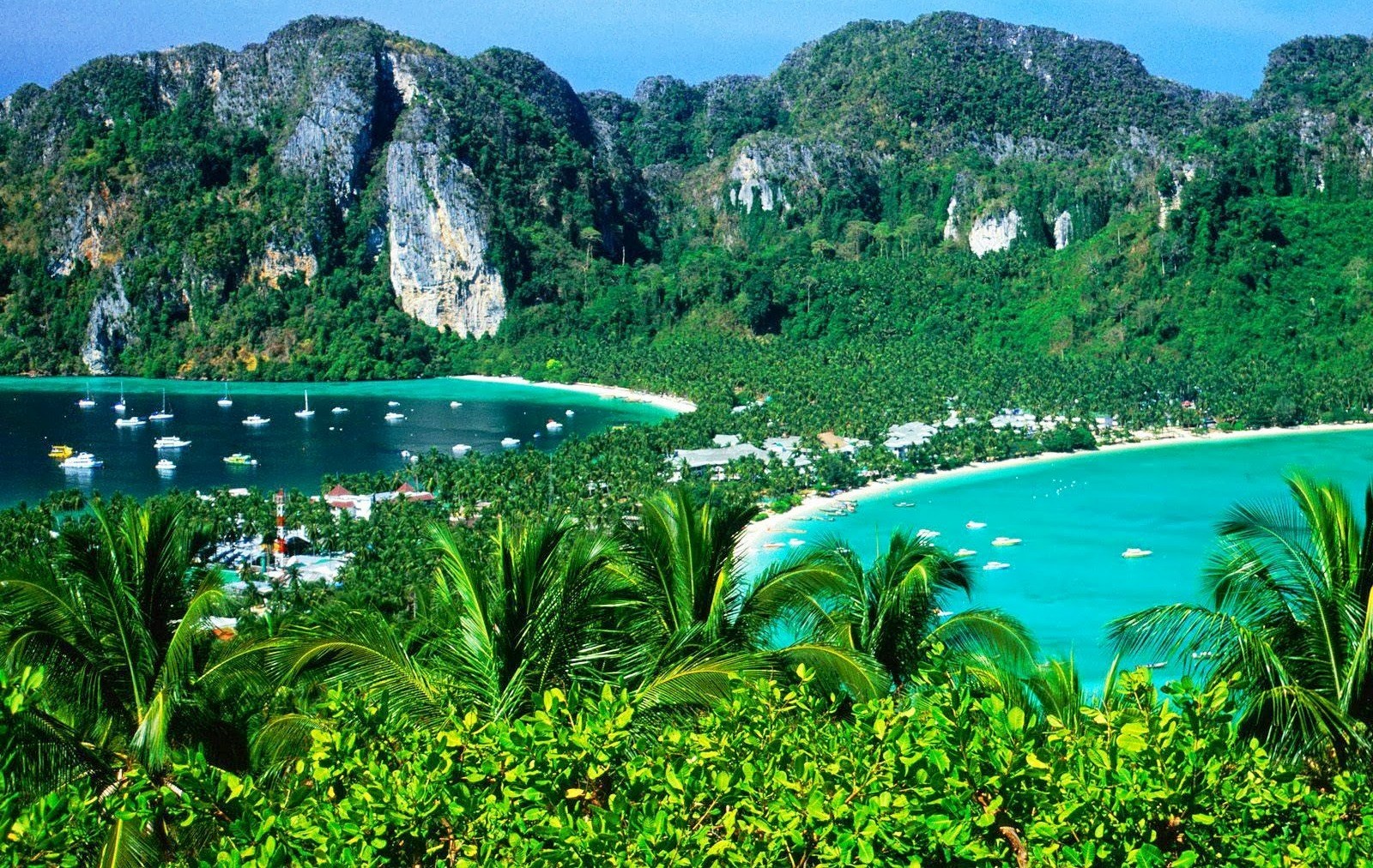 Description: A tropical island with a lagoon and a beach in the middle of it.