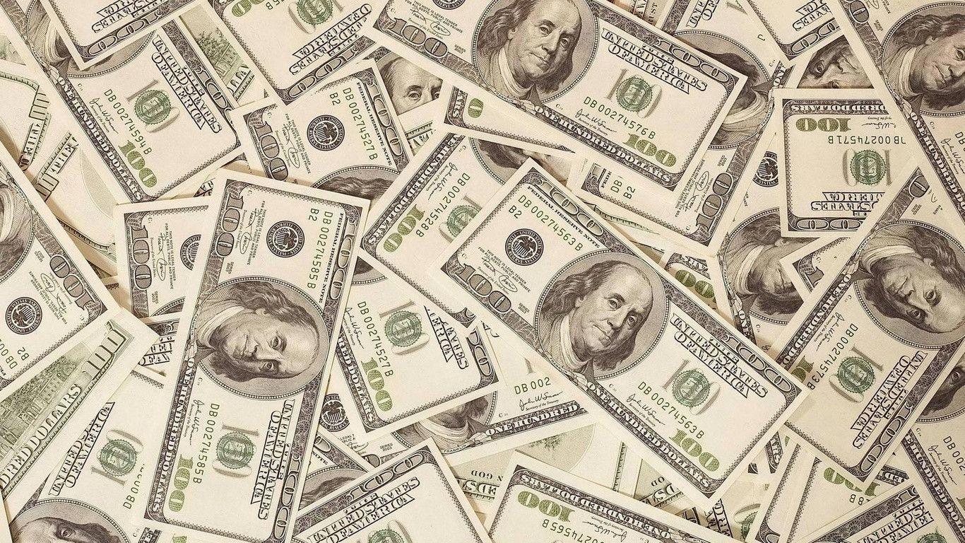 Description: A pile of twenty dollar bills with a lot of money on top of it.