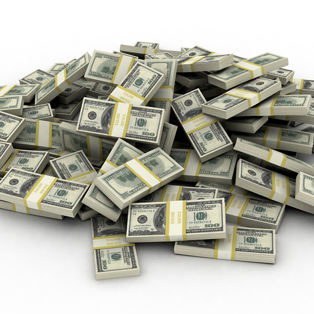 Description: A pile of twenty dollar bills on a white background with a white background and a white background with a white background.