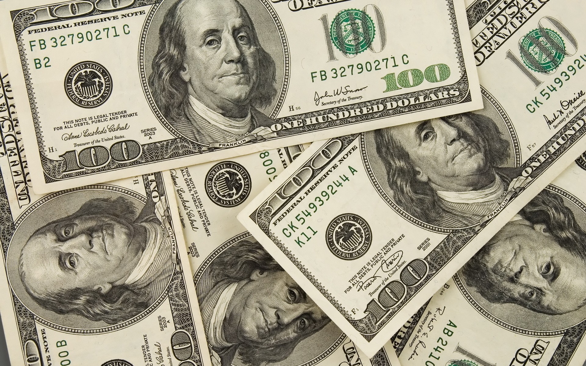 Description: A pile of twenty dollar bills sitting on top of each other on a table top with a pen and pencil.