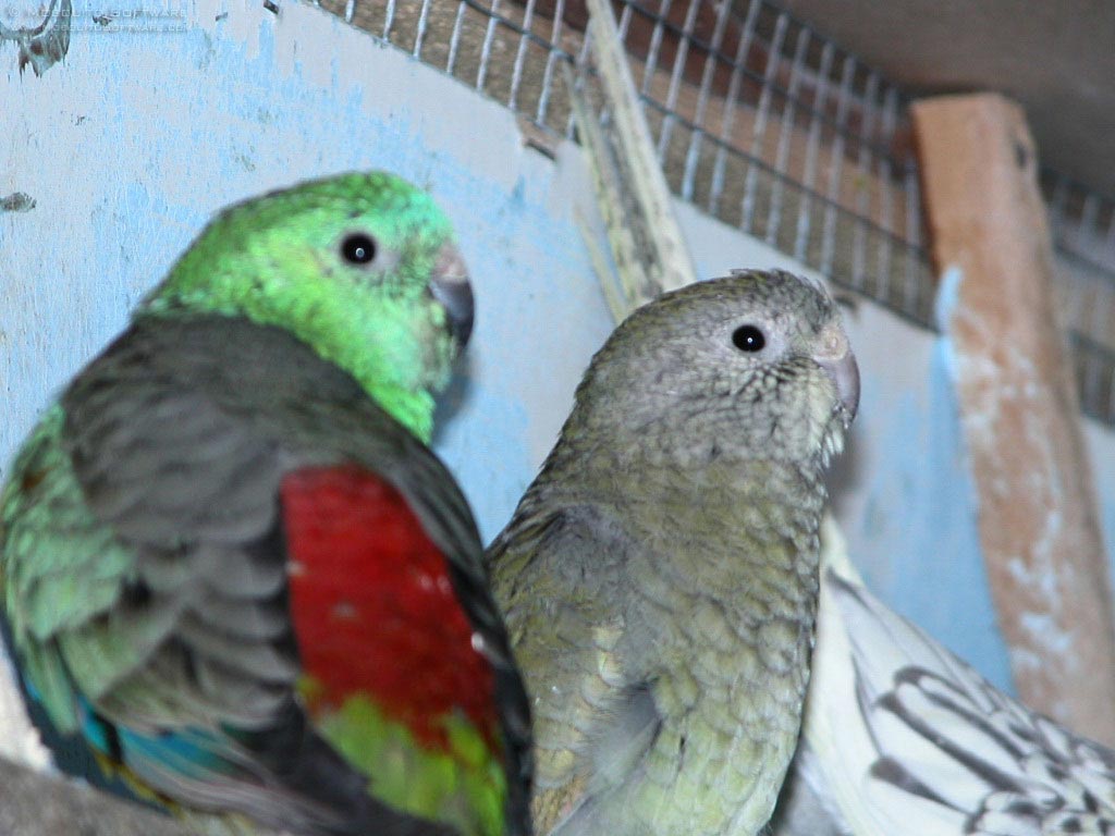 Description: Two birds are sitting on a perch in a cage together.