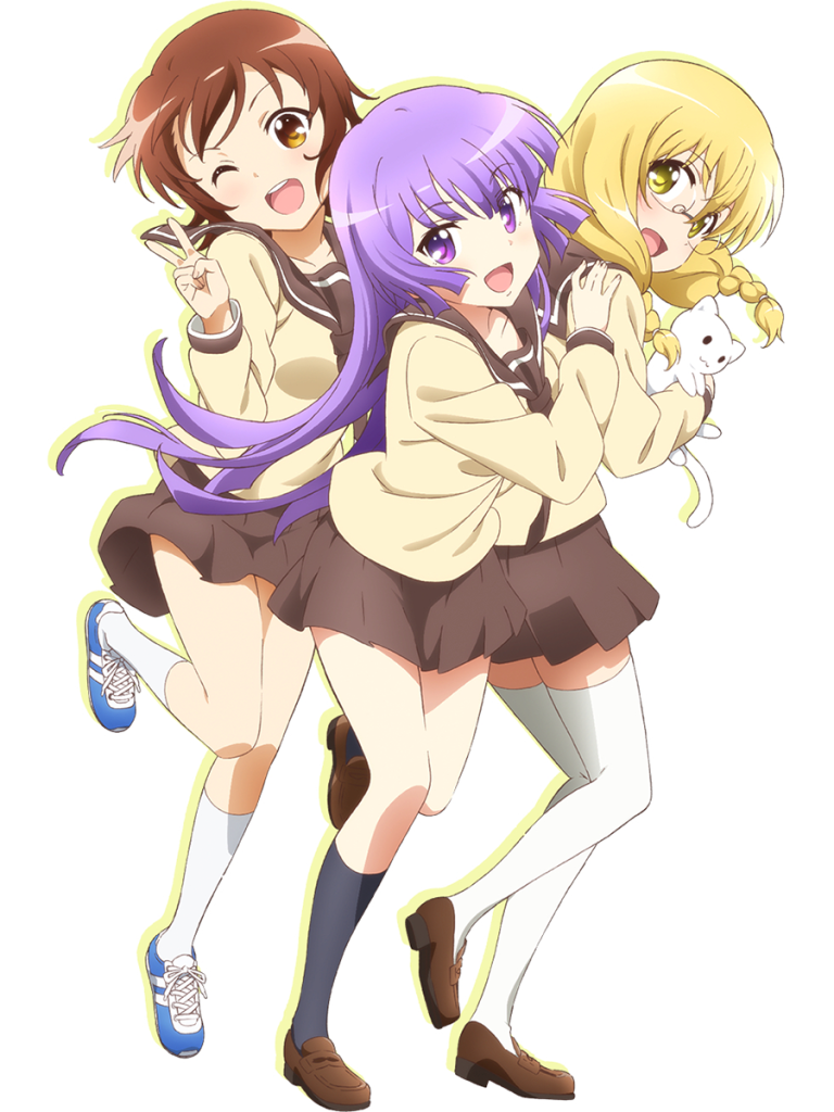 Description: Two girls with long hair and purple hair are standing next to each other.