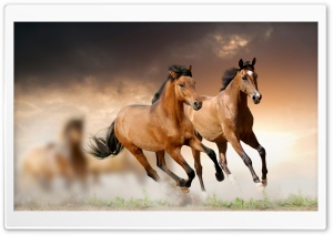Description: Two horses running in the air with a sky background behind them and a white frame around them with a picture of two horses running in the air.