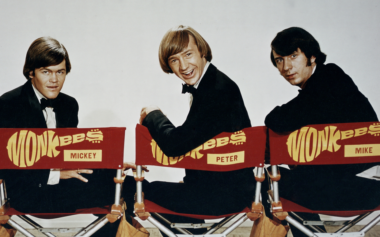 Description: Two men sitting in chairs with a sign behind them that says wookie and mickey mouse on them.