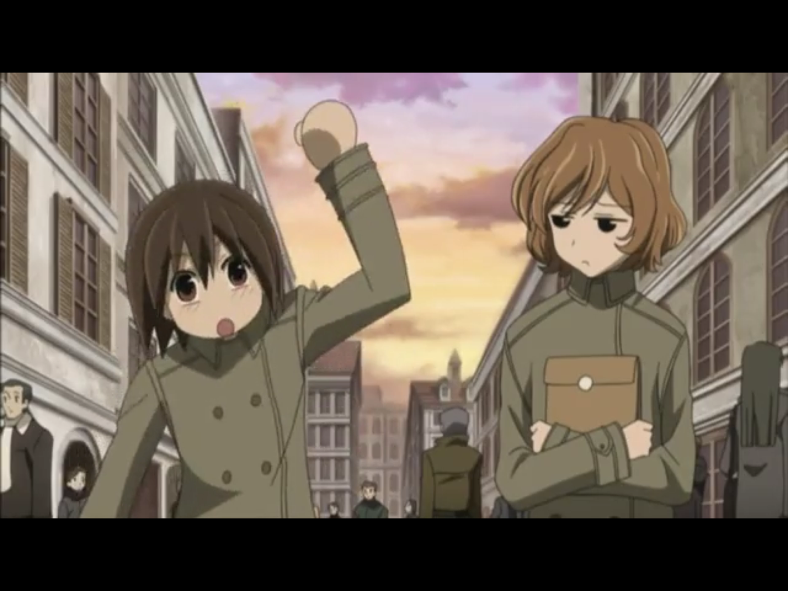 Description: Two people standing in a street with their arms up in the air and one person holding a laptop in the other hand.