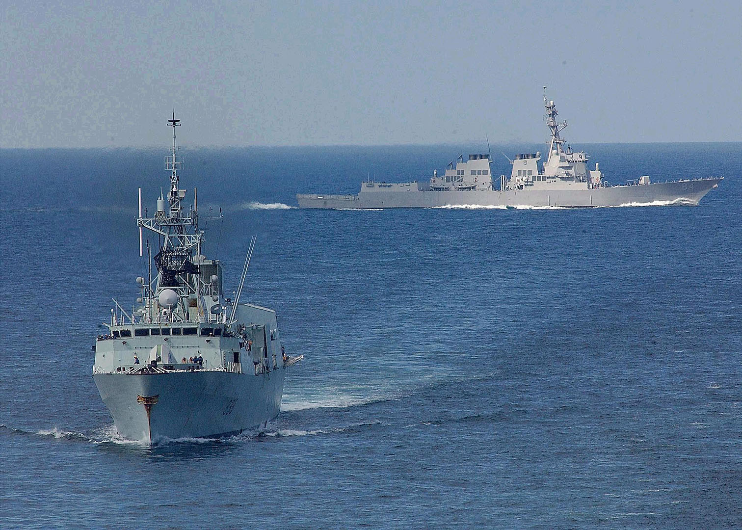 Description: Two ships in the ocean near each other in the water.