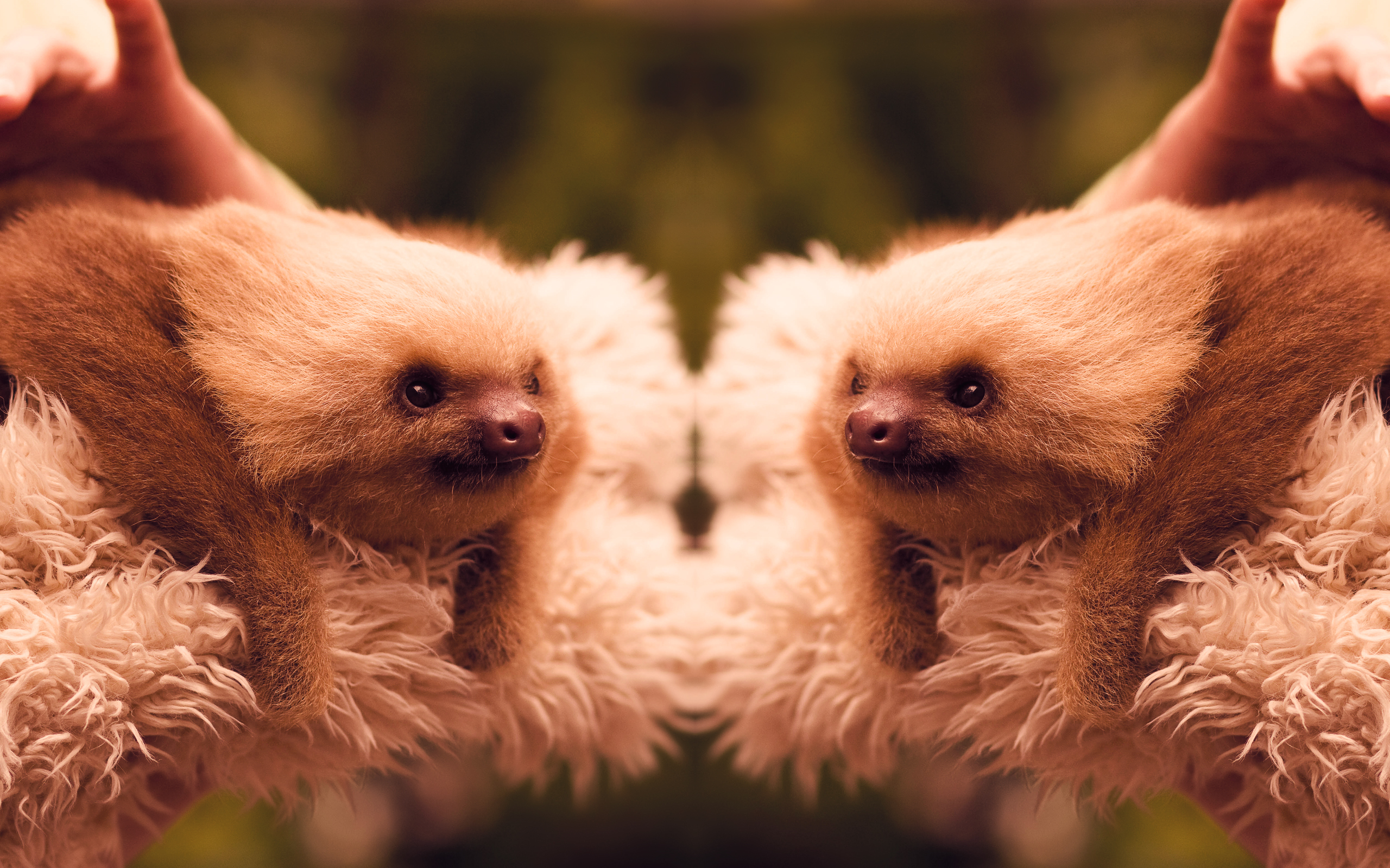 Description: Two sloths are shown in the middle of a picture with their mouths open and their noses wide open.