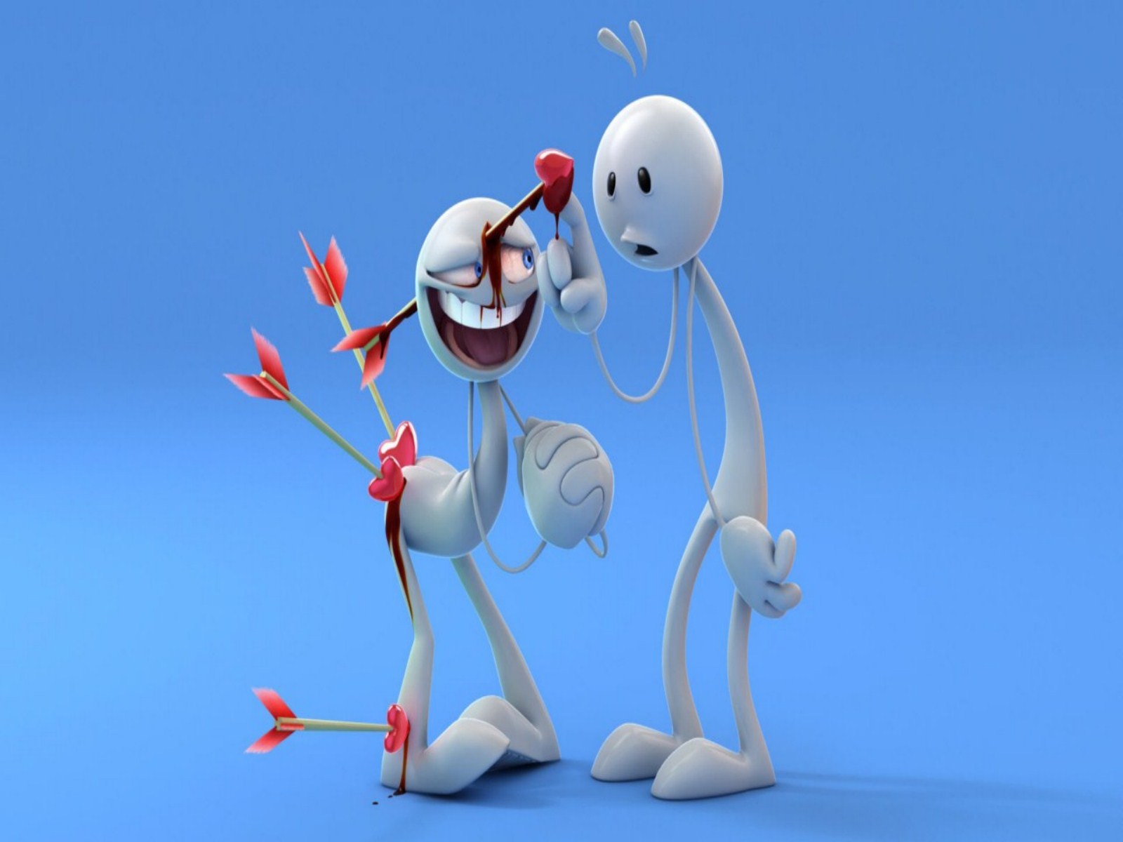 Description: Two white cartoon characters are holding a red flower and a red arrow in their hands.