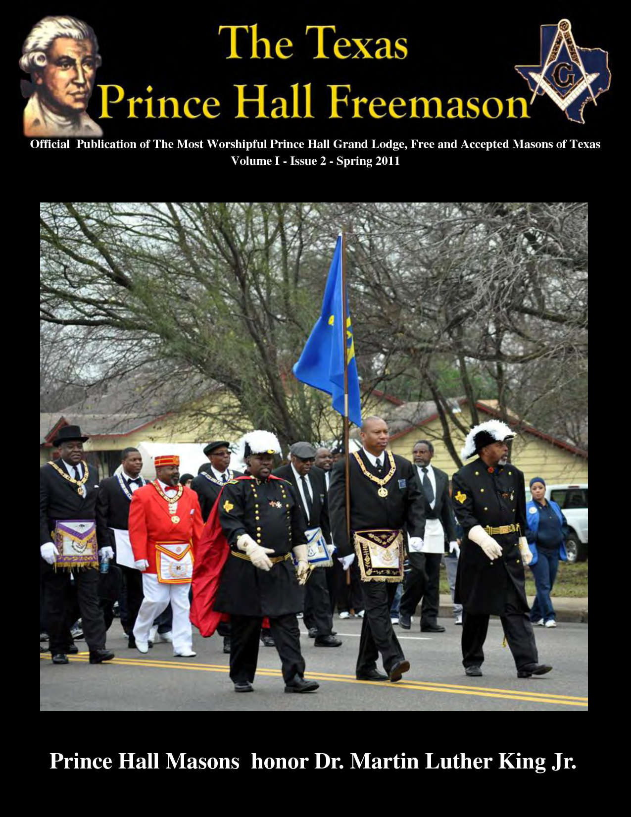 Description: A group of people in uniform walking down a street with flags and flags on them.