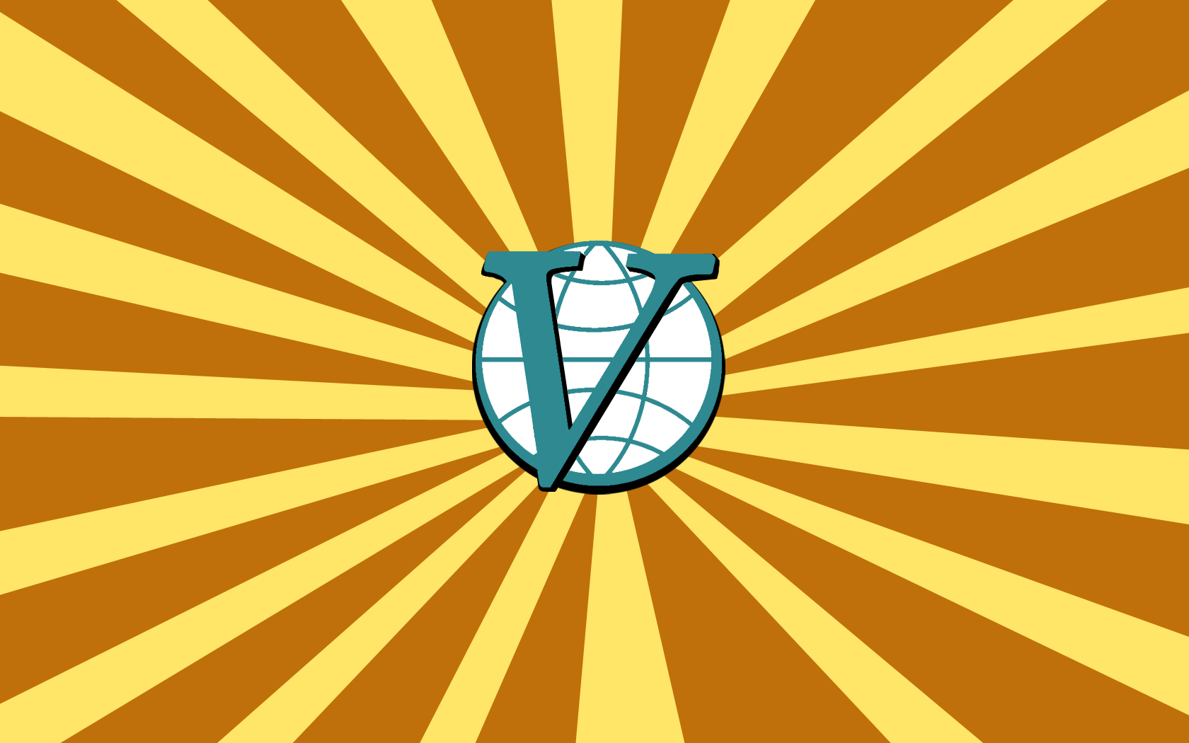 Description: A stylized image of a v letter on a yellow background with sunbursts in the background and a blue v on the bottom.