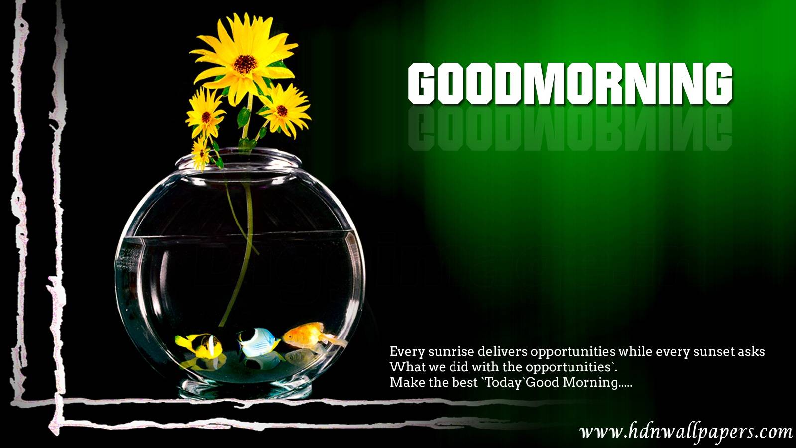 Description: A vase with flowers in it and a quote about good morning on the side of it that says.