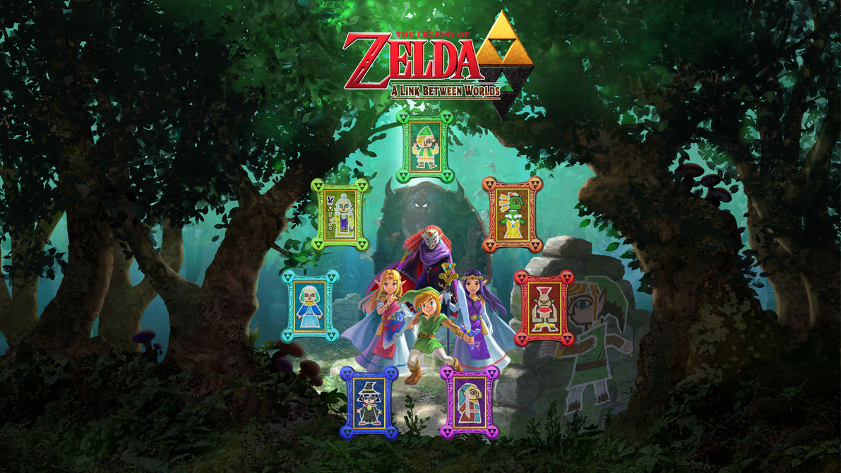 Description: A video game with a lot of characters in it and a lot of trees in the background with a link between them.