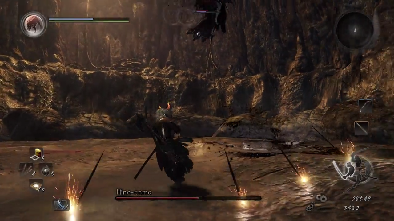 Description: A video game with a person on a horse in the middle of a cave with a light shining on it.