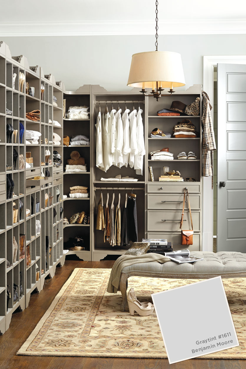 Description: A large walk in closet with a large rug and a lamp hanging from the ceiling and a large rug on the floor.