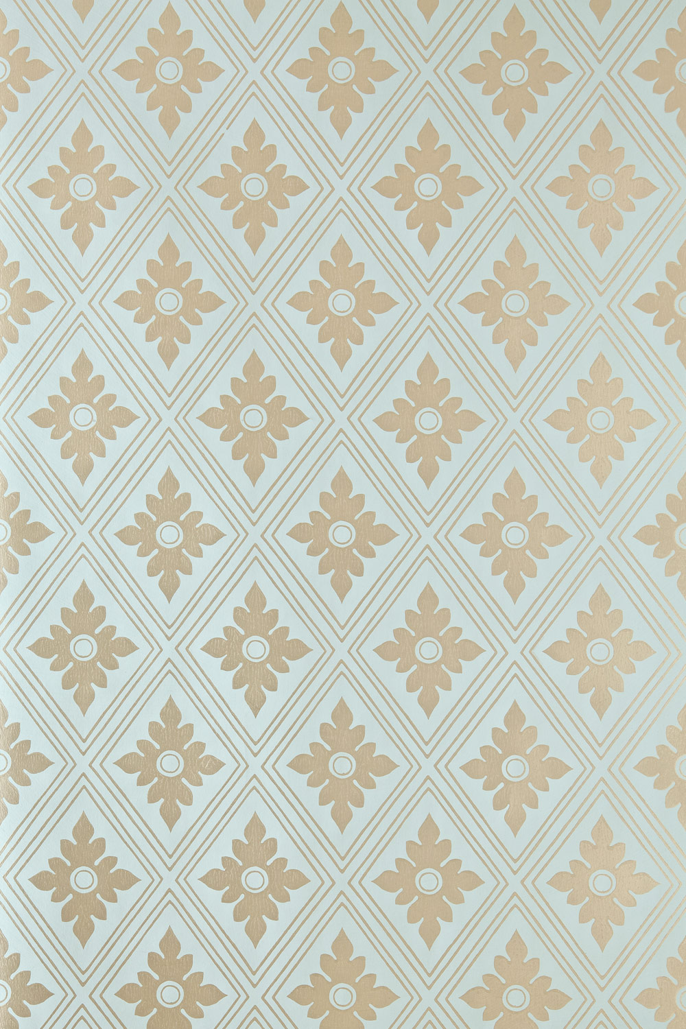 Description: A wall with a pattern of squares and flowers on it.