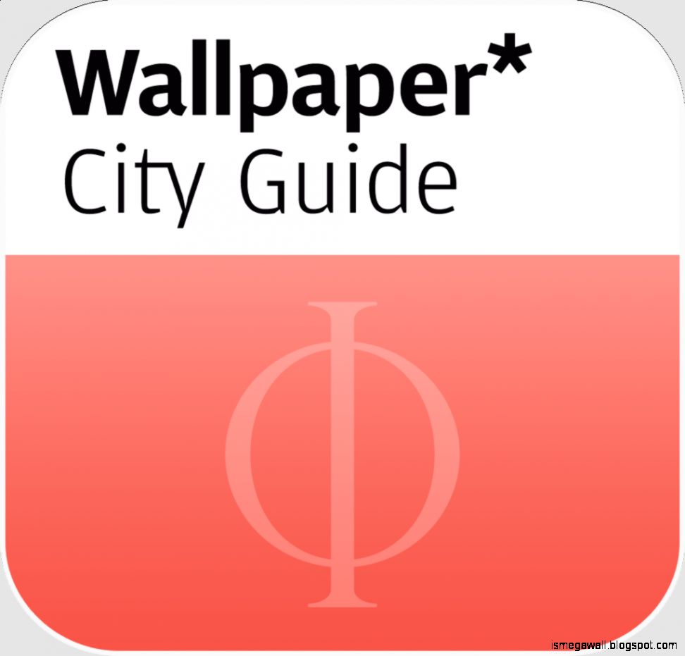 Description: A red and white sign with the word wallpaper city guide on it's side and a black and white logo.