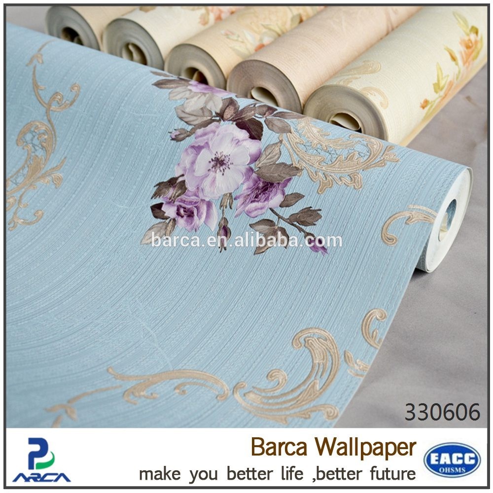 Description: A roll of wallpaper with flowers on it and a roll of fabric on the side of it with a roll of fabric on top.