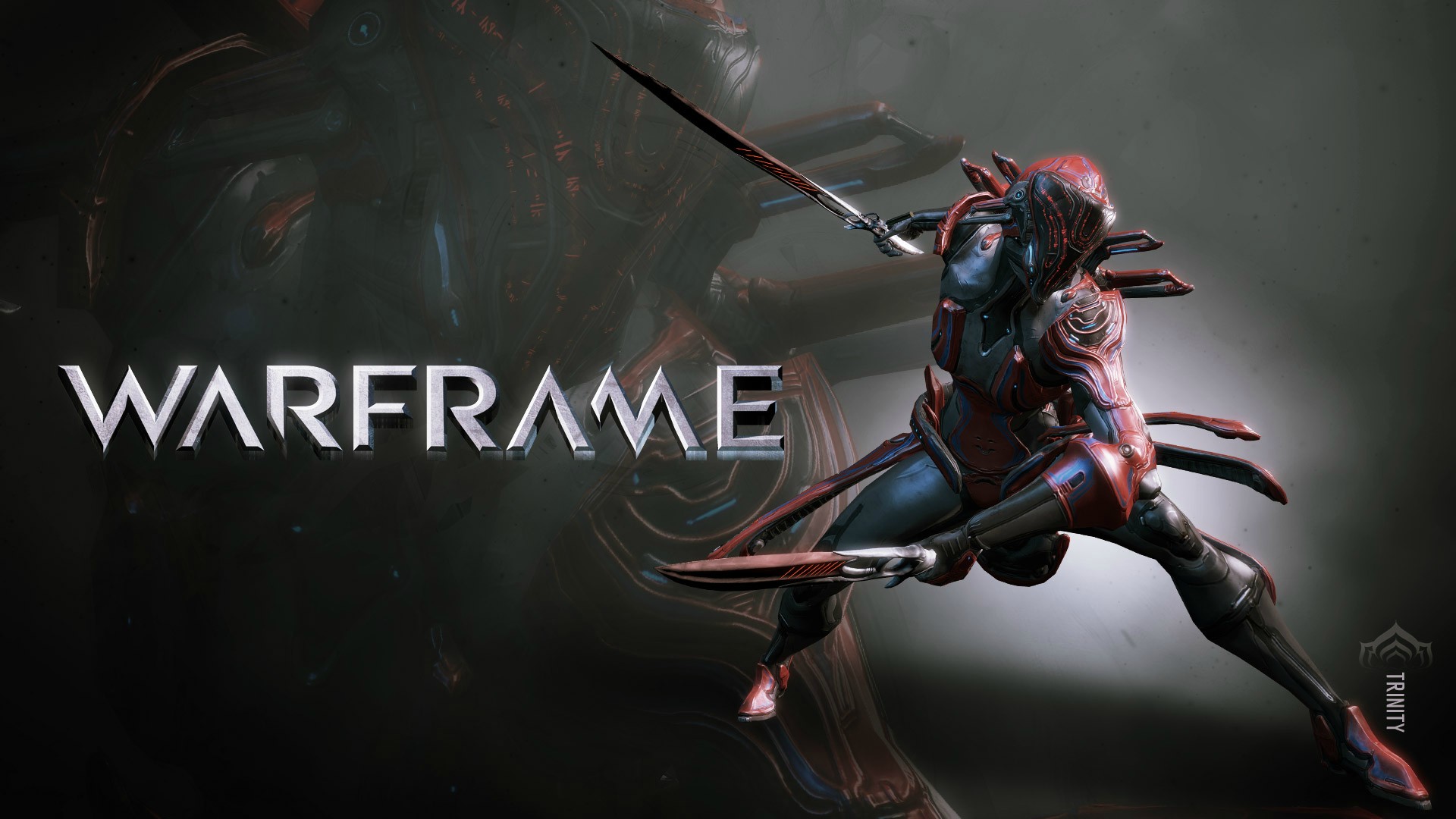 Description: A character from the video game warframe running with a sword in his hand and a helmet on his head.