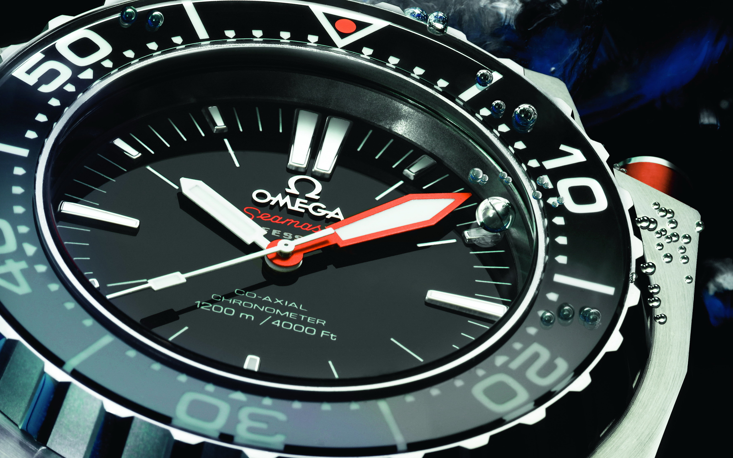 Description: A watch with a black and red face and a red second hand on a black and white bracelet with a red second hand.