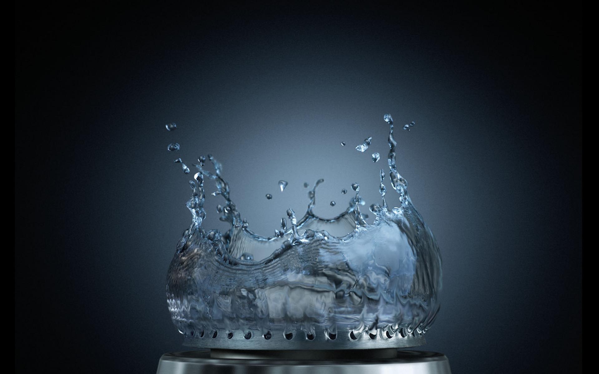 Description: A water crown is shown on a table top with a black background and a black background behind it.