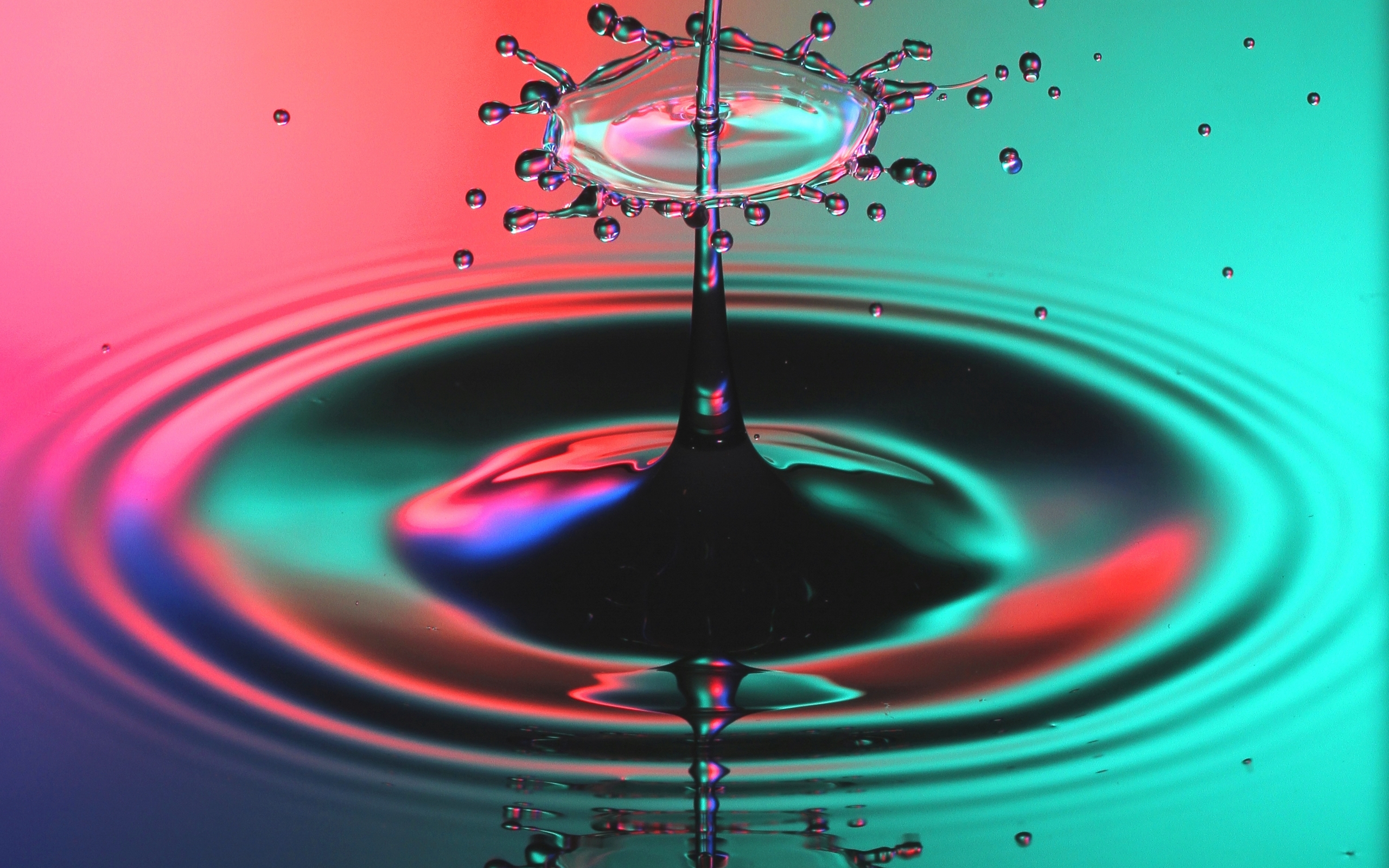 Description: A water drop with a colorful background and a drop of water on the bottom of it.