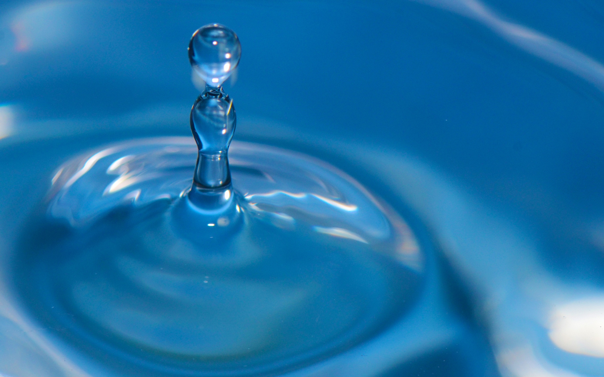 Description: A water droplet is shown in a blue bowl of water with a droplet of water in the middle.