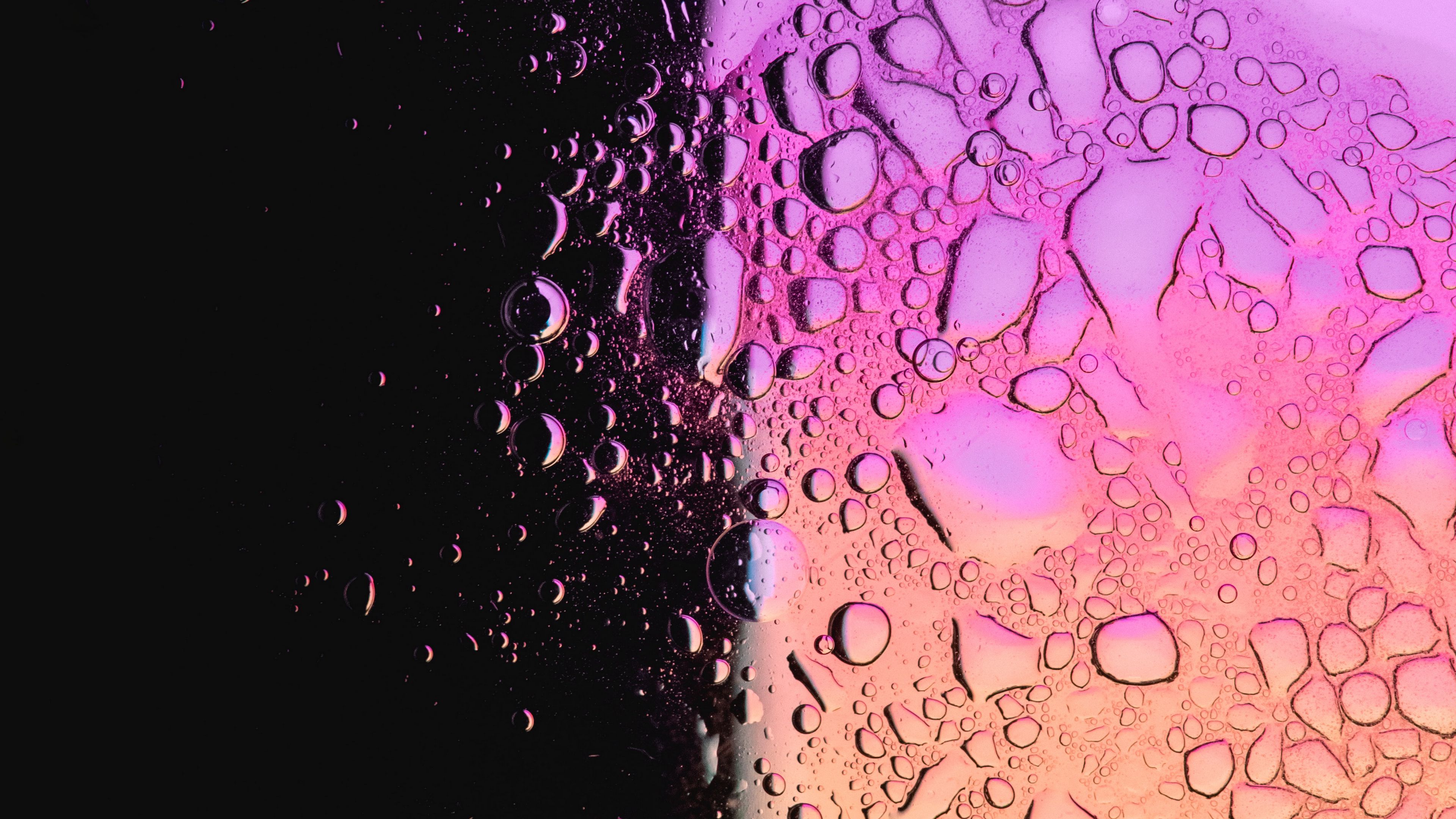 Description: A window with water drops on it and a pink and purple background with a black background and a black background.