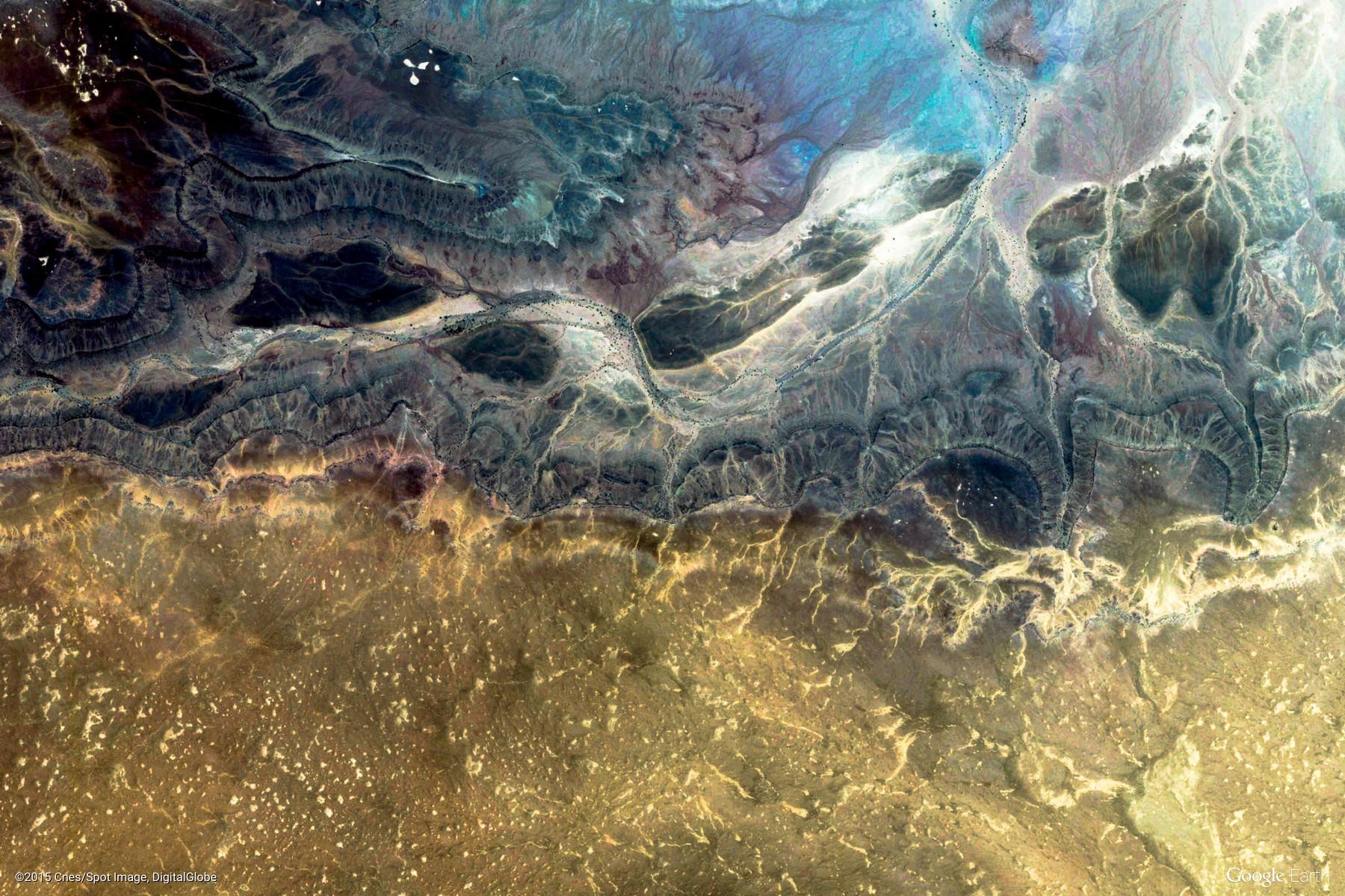 Description: A close up of a large body of water with a brown and blue substance on it's surface.
