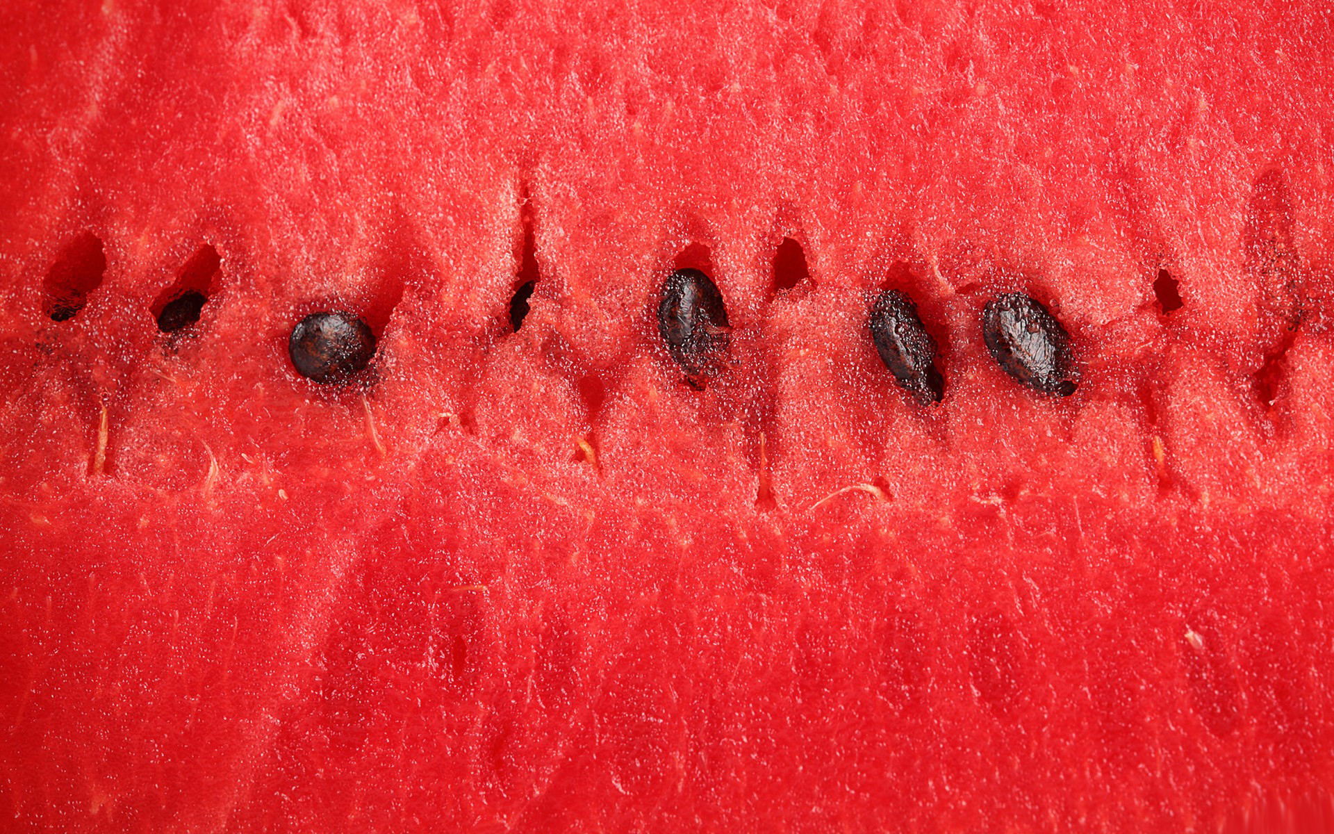 Description: A close up of a watermelon slice with seeds and seeds on it's surface.