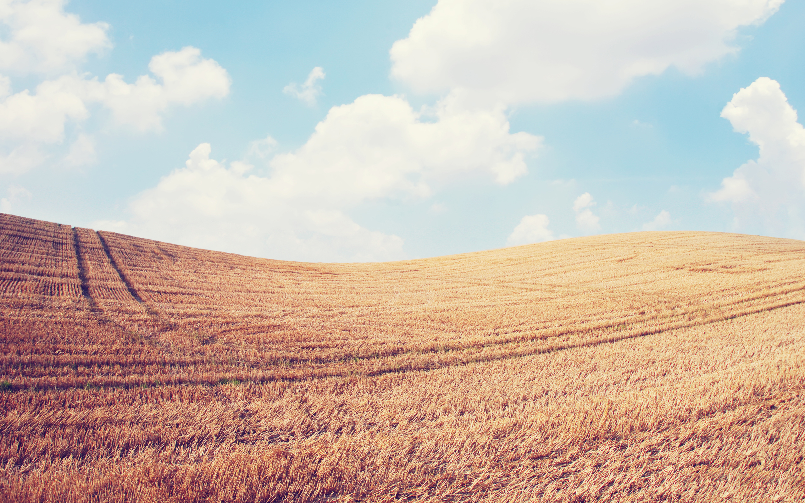 Description: A field of wheat with a sky background and clouds in the sky above it.