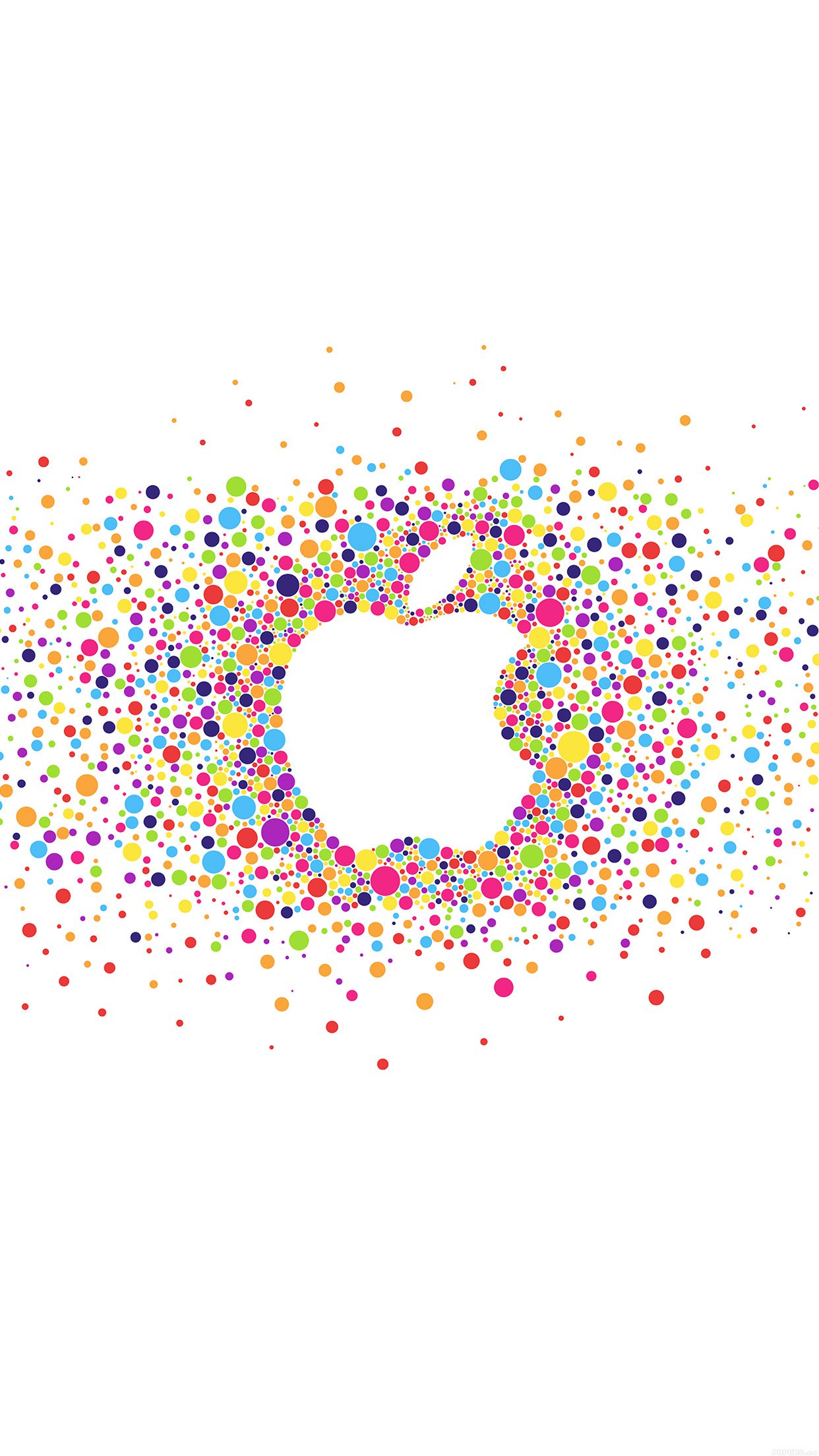 Description: A white apple logo with colorful dots on it's side and a white background with a white apple logo.