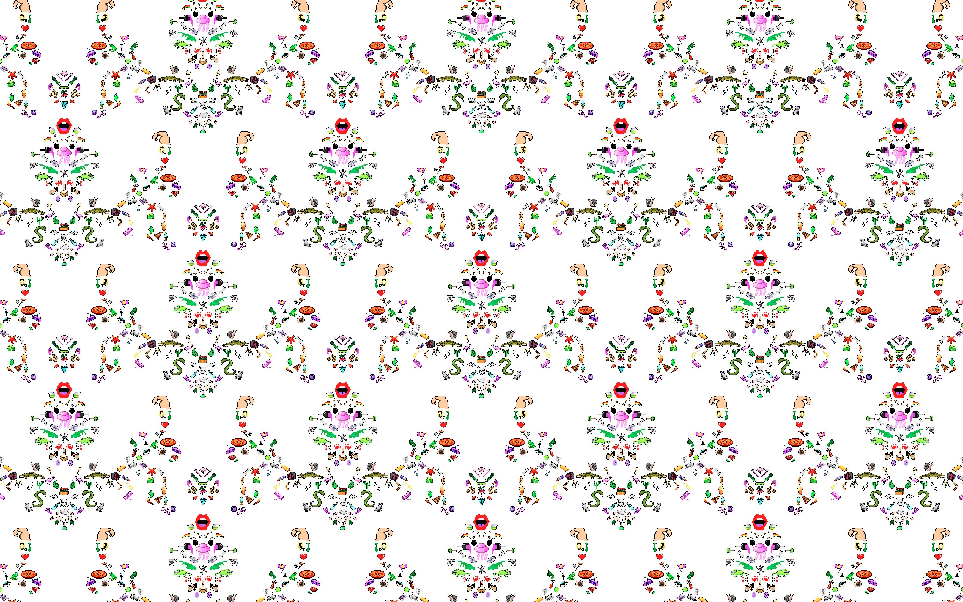 Description: A white background with a colorful pattern of flowers and leaves on it.
