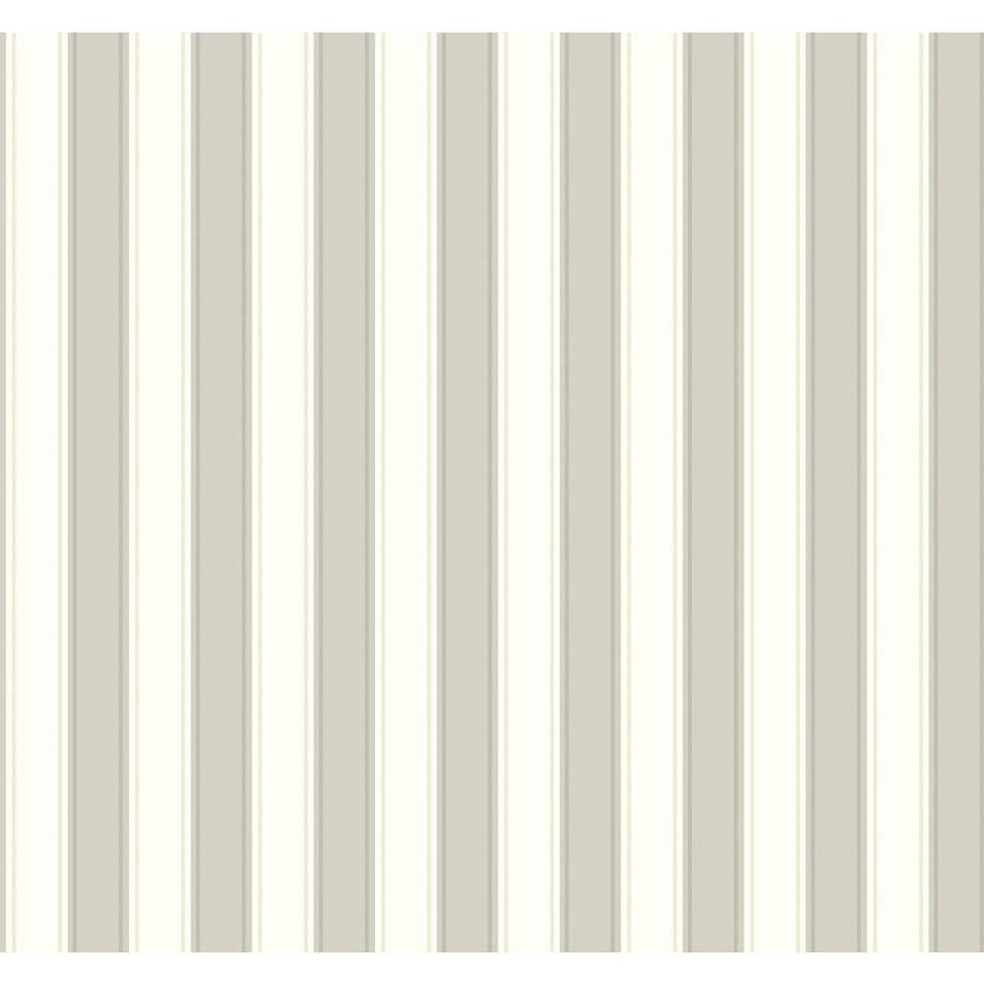 Description: A white and beige striped wallpaper with vertical stripes on it's sides and a white vase with a flower in it.