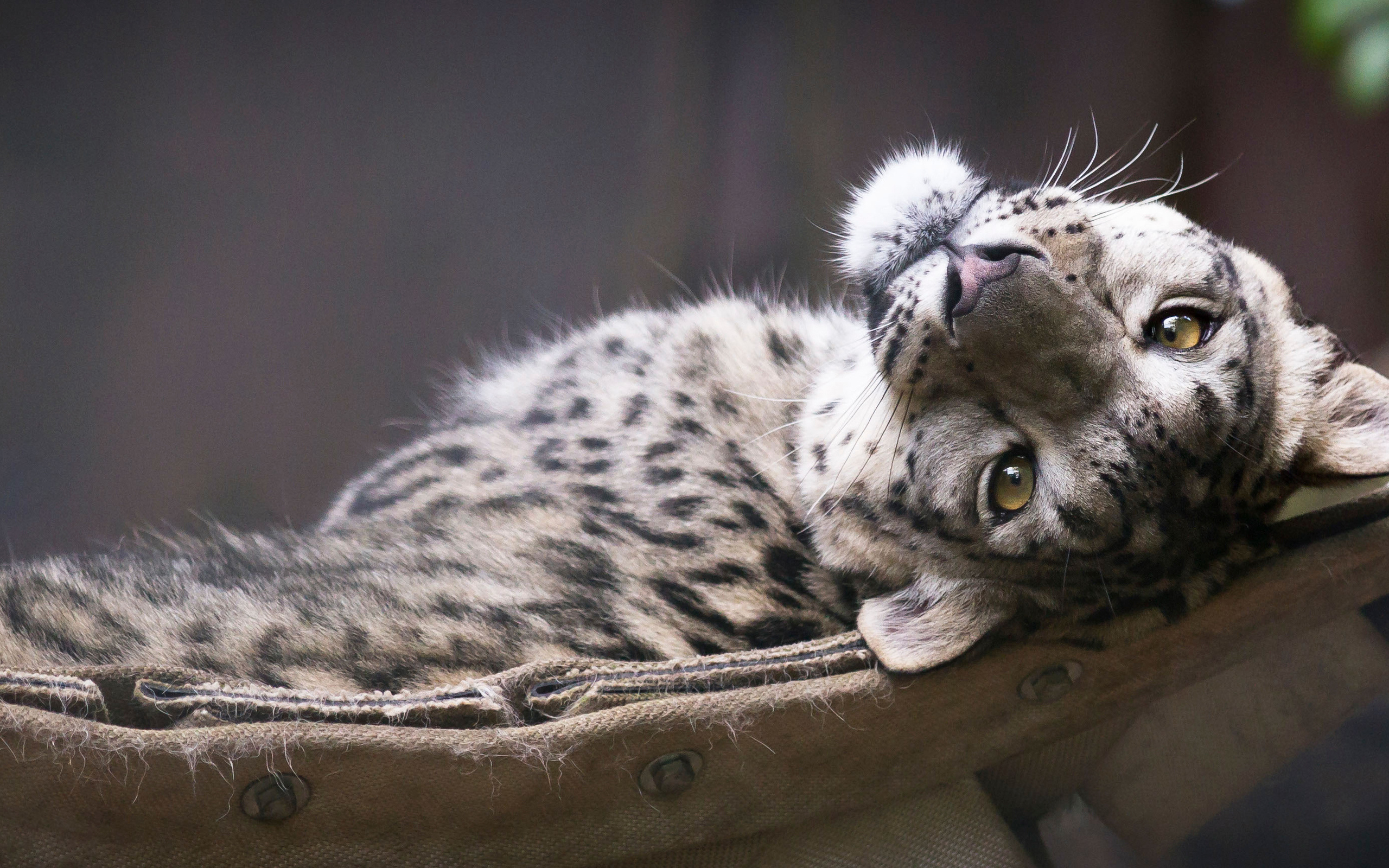 Description: A white and black cat laying on a pillow in a room with a wooden fence and a tree in the background.