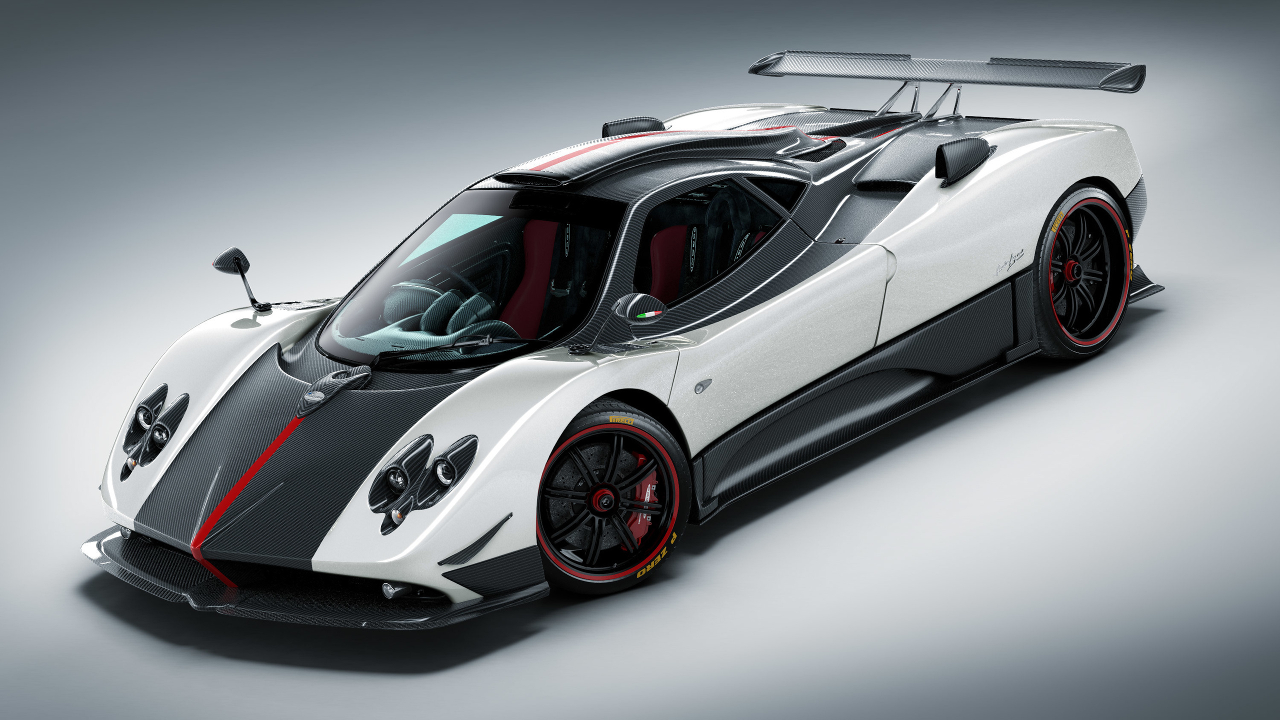 Description: A white and black sports car with red accents on the front of it's body and side doors.
