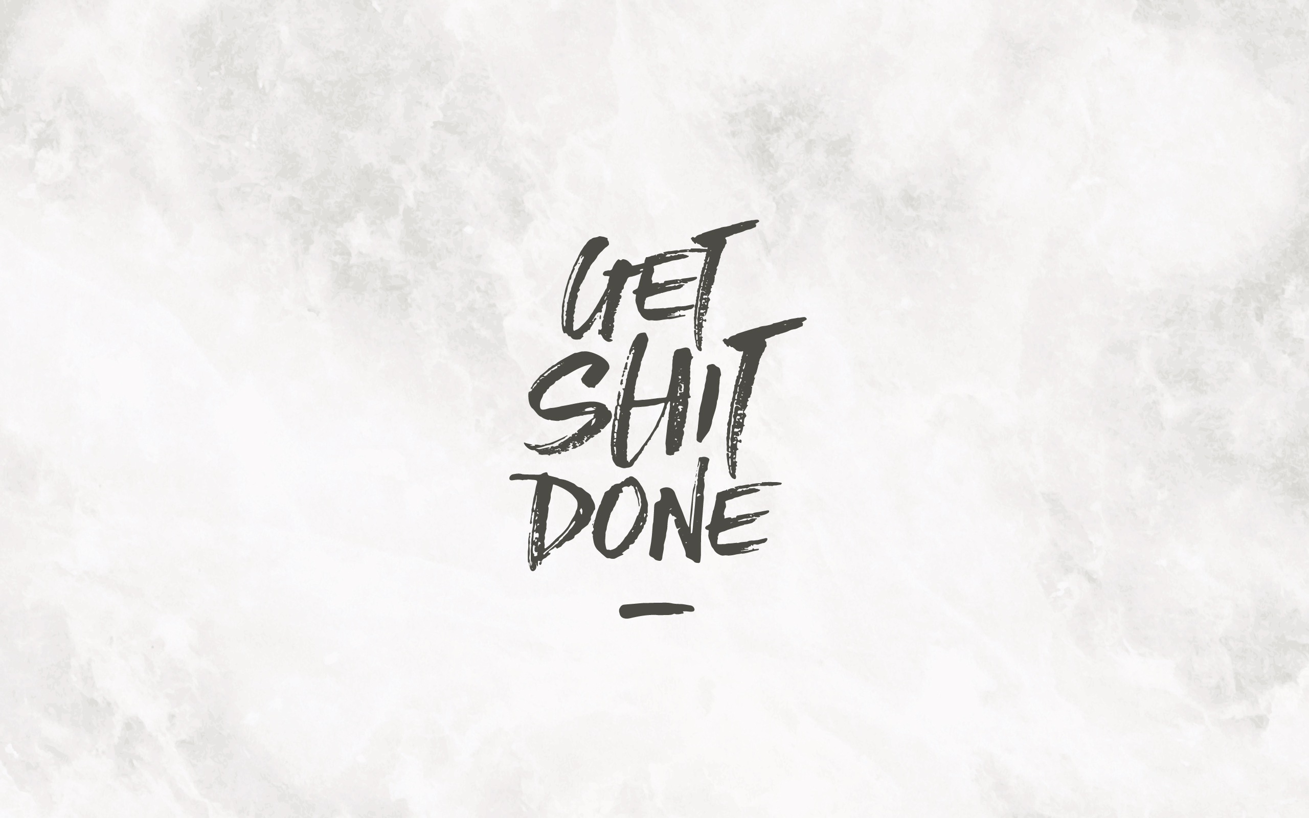 Description: A white and black wall with a black and white quote on it that says get shit done on it.