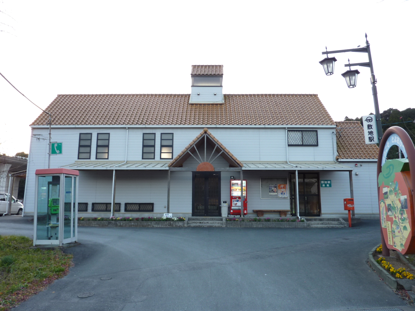 Description: A white building with a red roof and a clock on the front of it and a light pole in front of it.