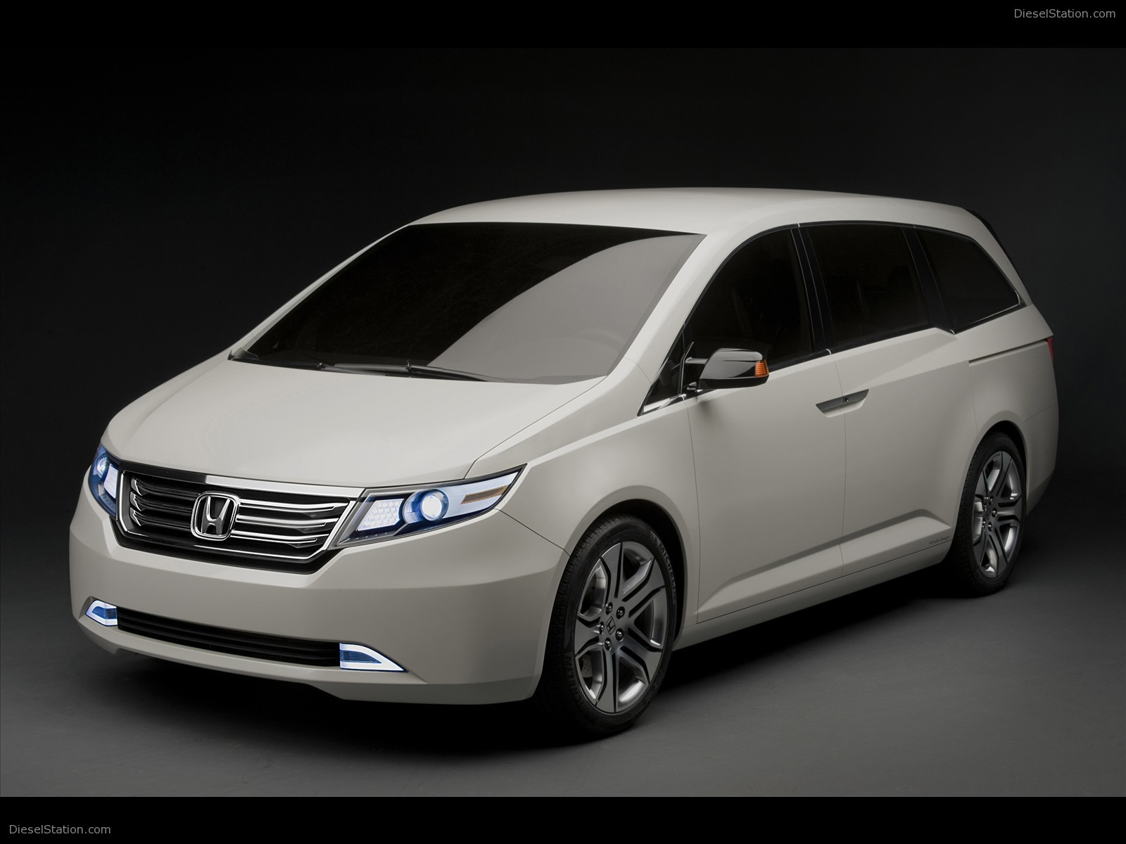 Description: A white car is shown in a dark room with a black background and a black background with a white car.