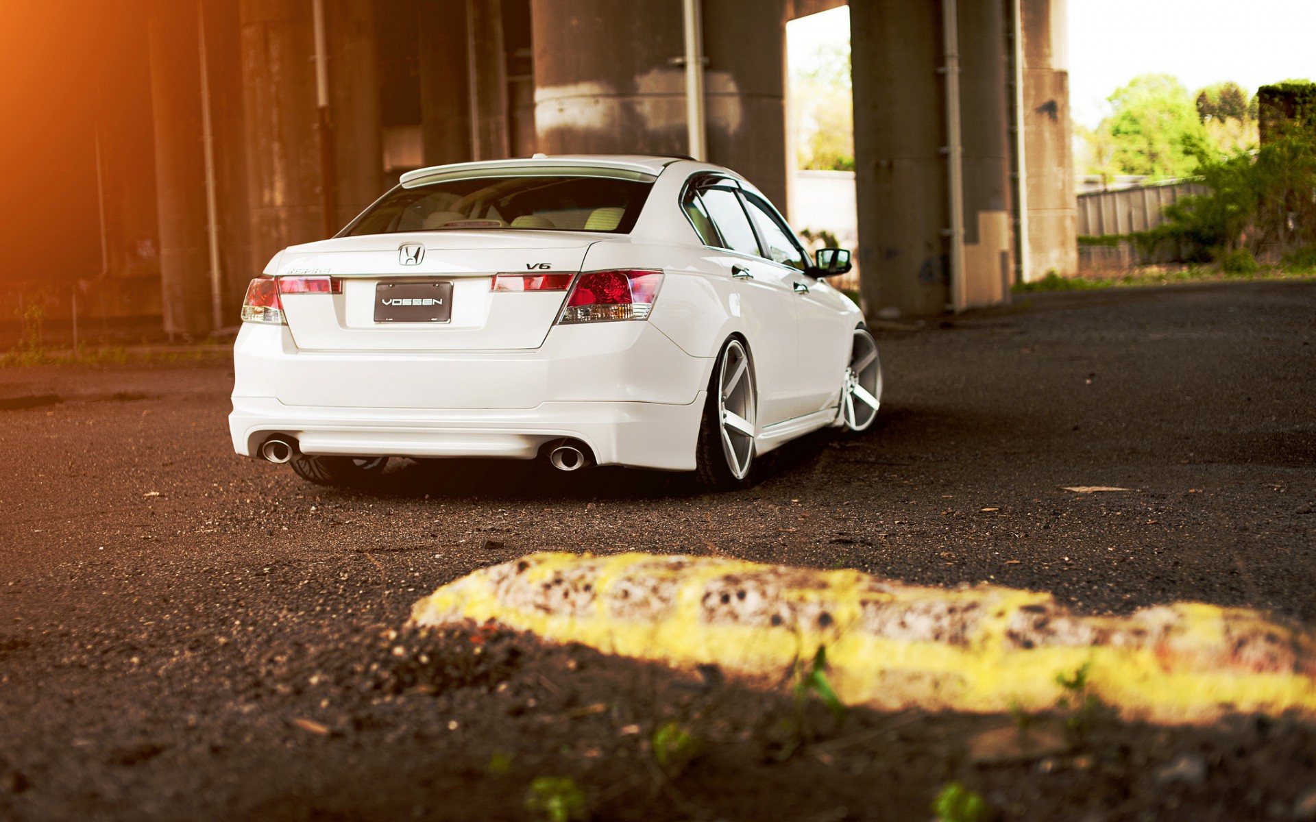 Description: A white car parked in a parking lot next to a building and a yellow object on the ground near a yellow object.