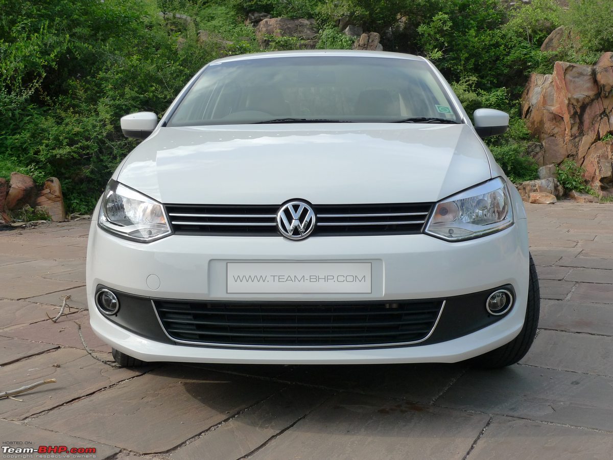 Description: A white car parked in front of a rock wall and trees in the background with a sign that says.