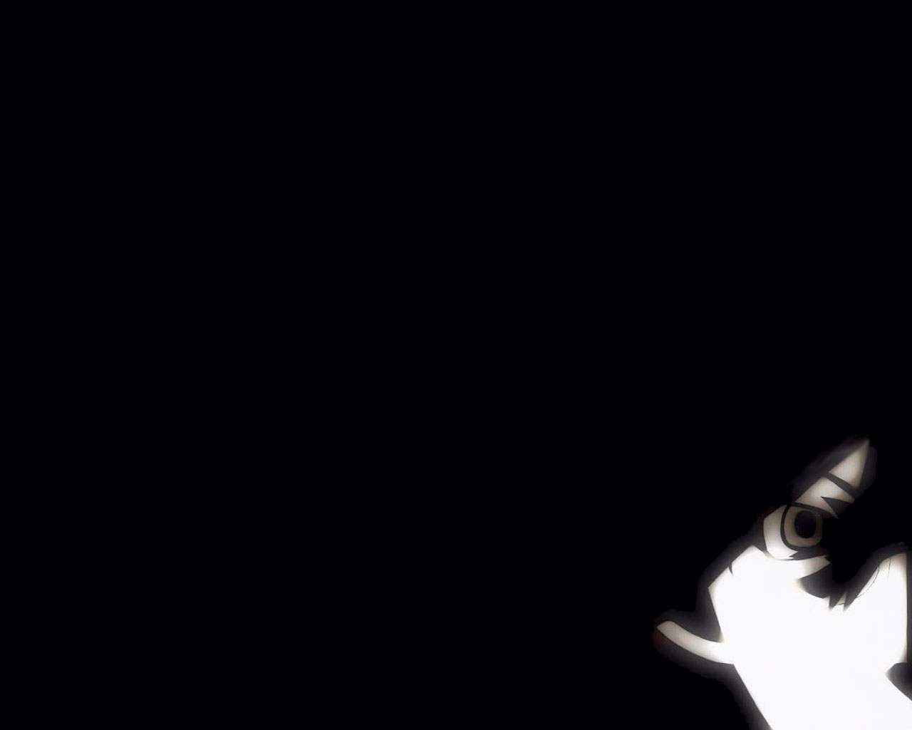 Description: A cat is looking at a light in the dark with its eyes open and a black background with a white cat.